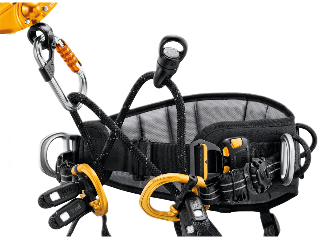 L’organisation du matériel est un autre point fort du Petzl Sequoia. Avec ses nombreux porte-matériels préformés, ses passants pour porte-outils et ses points de fixation dédiés, il facilite le transport et l’accès aux équipements indispensables comme les longes, mousquetons ou outils de coupe. Cette modularité permet de configurer le harnais selon les besoins spécifiques de chaque chantier.